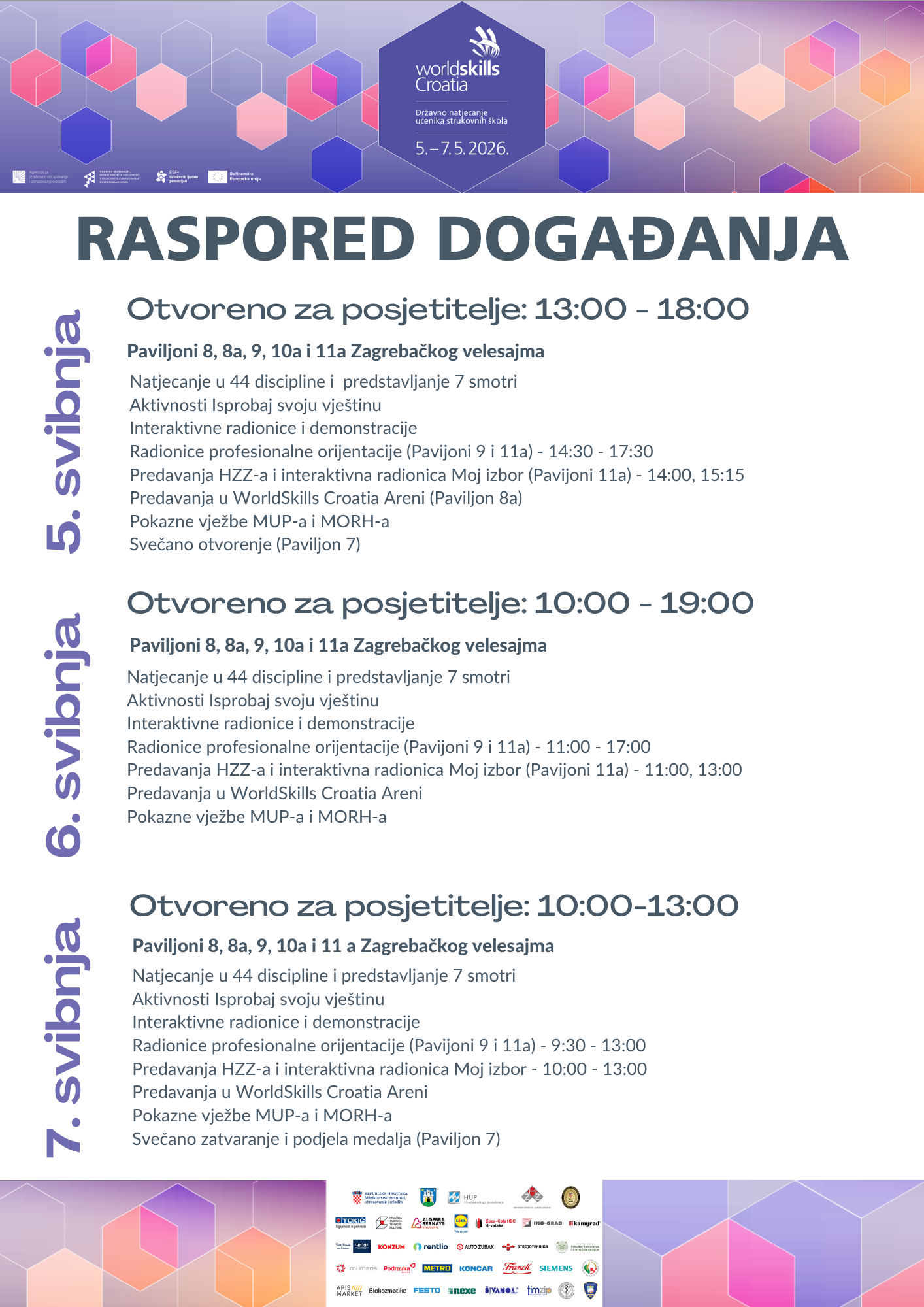 Tijekom tri dinamična dana očekuje se više od 10.000 posjetitelja, među kojima i učenici iz preko 200 osnovnih škola iz svih dijelova Hrvatske, kao i brojni gosti iz inozemstva. WorldSkills Croatia pruža jedinstvenu priliku da se strukovne vještine dožive uživo, u stvarnom okruženju, kroz natjecanja, tehnologiju i ljude koji pomiču granice izvrsnosti.